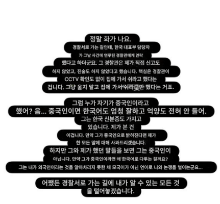 - 가해자는 한국인이 아닌 중국인으로 확인됨.