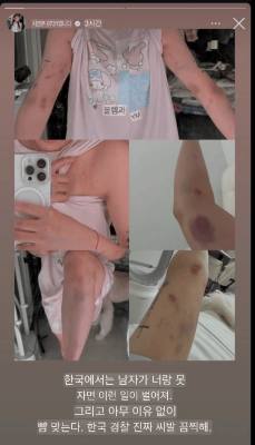 - 피해자 류 씨는 자신의 SNS에 멍 자국과 붕대를 감은 사진 공개.